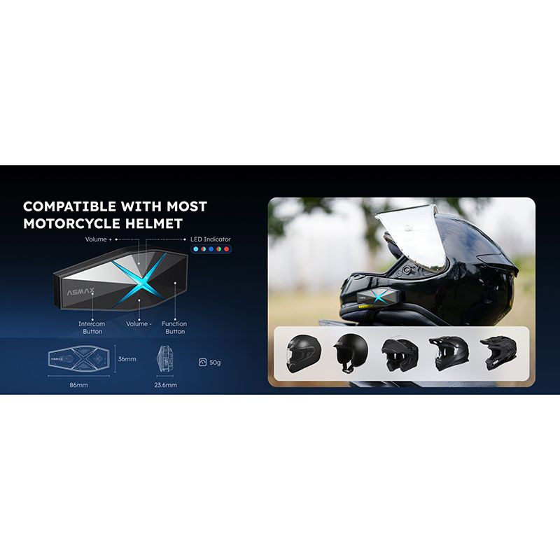 La marque ASMAX vous propose cet intercom F1 PLUS doté des toutes dernières fonctionnalités avancés présente sur le marché : Technology MESH, qualité ...