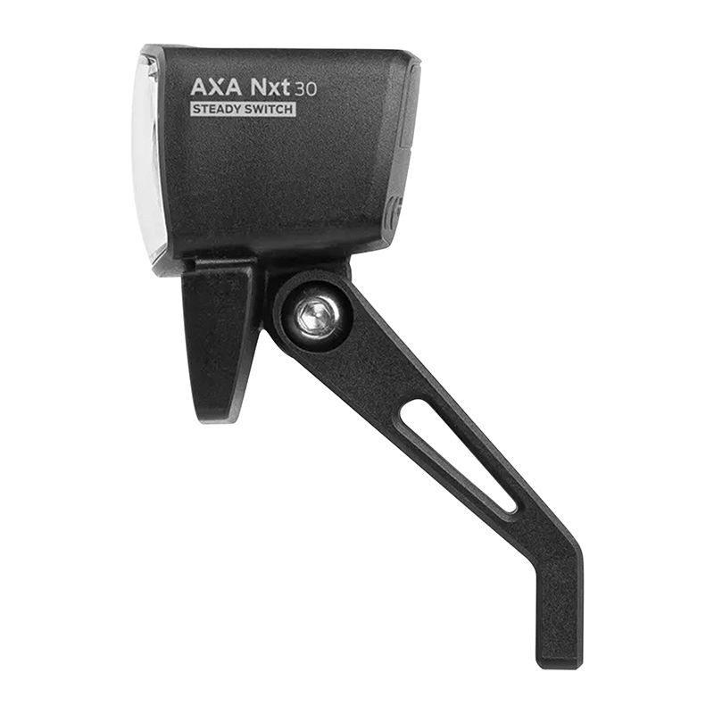 ECLAIRAGE VELO POUR MOYEU DYNAMO AVANT SUR FOURCHE AXA NXT 30 LUX NOIR BOUTON SWITCH ON/OFF - POUR VOIR A 50 M ET VISIBLE A 3 kms - ECLAIRAGE A L'ARRE...