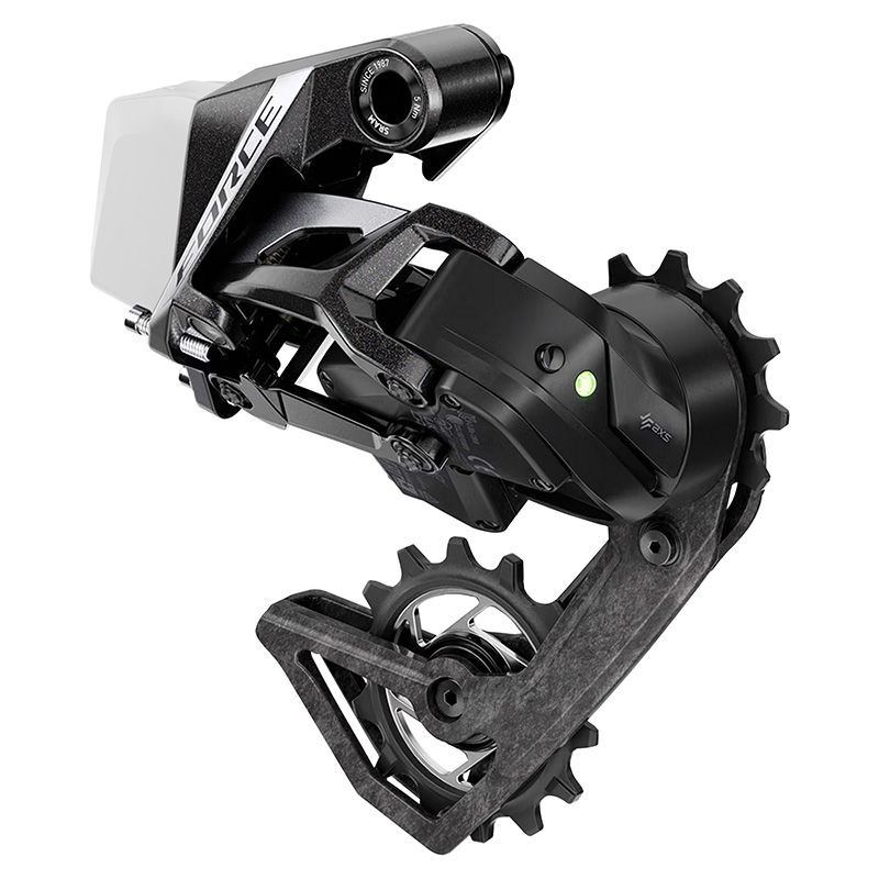 Le dérailleur arrière SRAM FORCE AXS E1 dispose d un nouveau châssis plus léger et de plus grands galets pour améliorer l efficacité de la transmissio...
