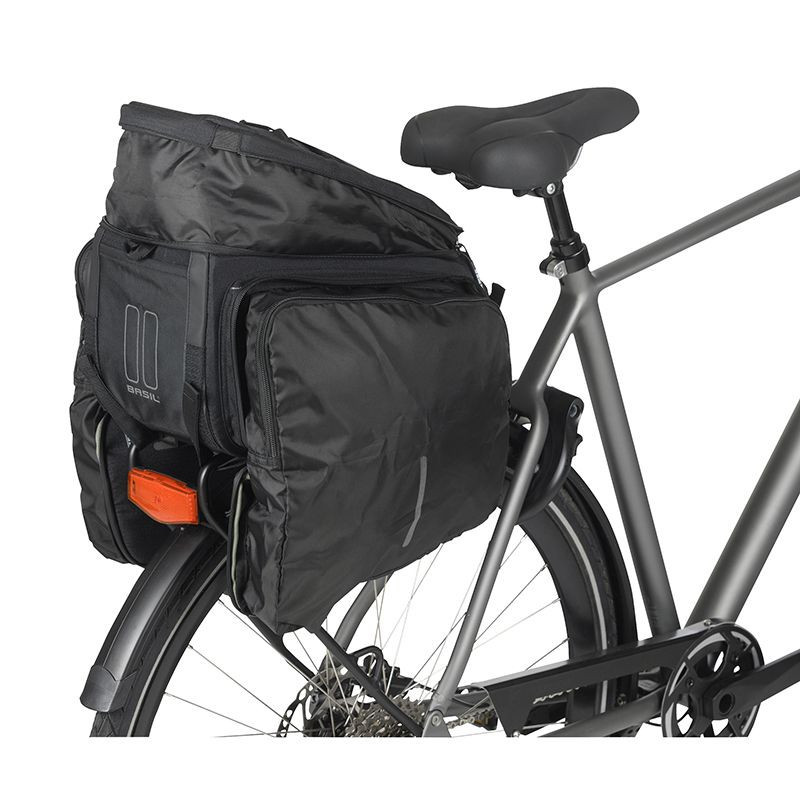 Sacoche de porte-bagages arrière en polyester recyclé déperlant. Les poches latérales et principales à fermetures éclair sont extensibles. Elle est ...