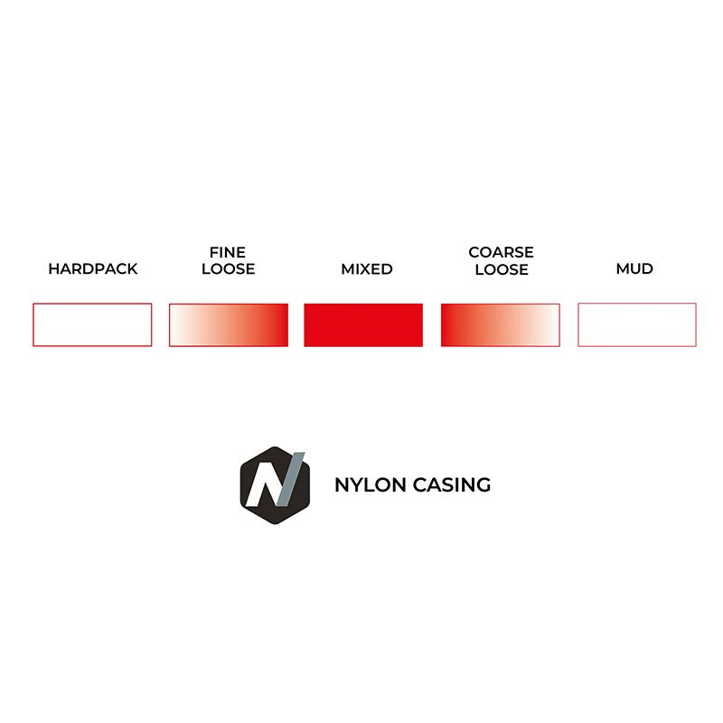 Le pneu Terreno T50 Mixed Gravel Endurance est l'une des deux options intermédiaires entre deux références du gravel : le T30 (anciennement Terreno Dry) et le T70 (anciennement Mezcal). Avec un indice T de 50, ce pneu offre un équilibre parfait entre performance sur route et aptitude hors route. Sa bande de roulement polyvalente, avec sa nouvelle texture de lamelles directionnelles et ses crampons performants en virage, en fait un excellent choix pour affronter une grande variété de terrains avec un contrôle et une confiance accrus.