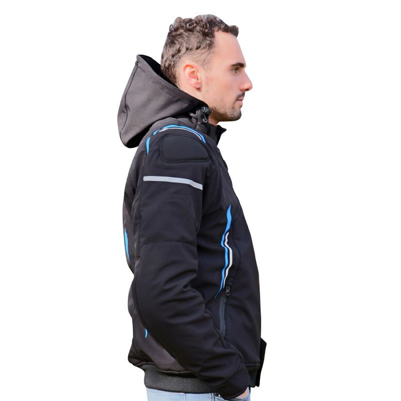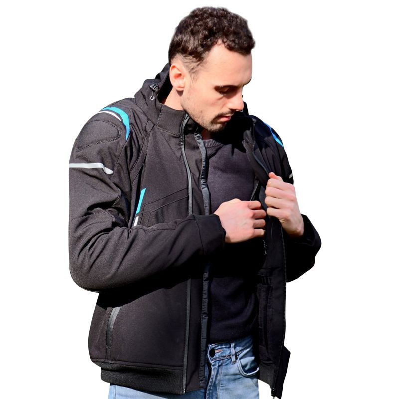 Blouson Moto homologué NF EN 17092-4 : 2020.Matière en Polyester Softshell Imperméable. Capuche amovible. Doublure intérieure thermique avec systèm...