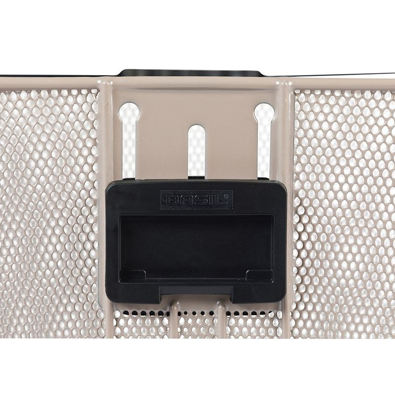 Panier avant amovible en acier mailles fines avec poignée. Fourni avec la plaque adaptateur. Panier réglable en hauteur.